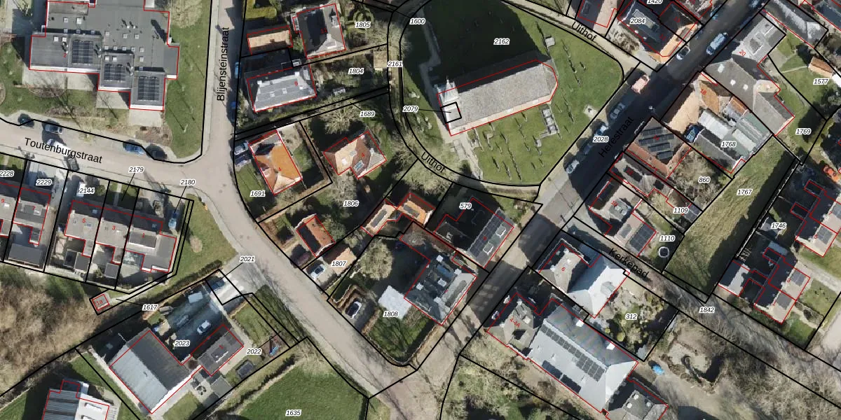 Gebruik de zoekbalk of klik op een perceel voor informatie over de adressen binnen dit perceel.