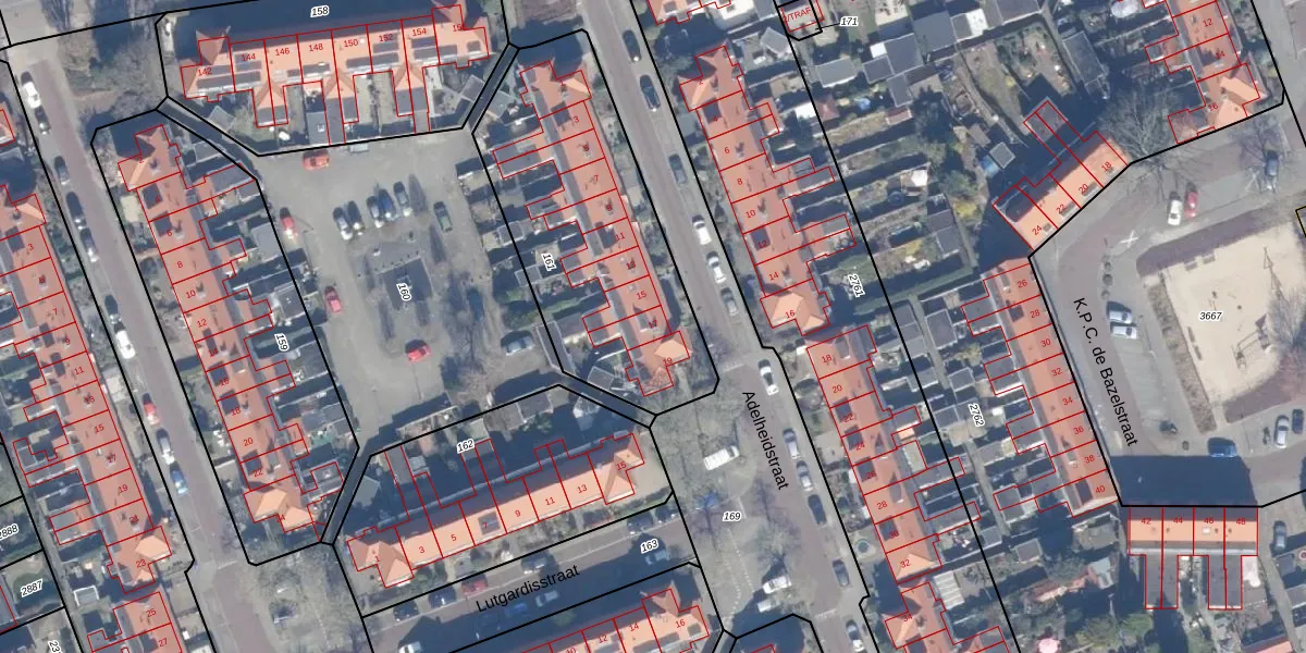 Het perceel waarop Adelheidstraat 17 staat heeft een oppervlakte van 1160 m². Dit is een zeer groot perceel. De perceeloppervlakte wordt geregistreerd door het Kadaster. Gedetailleerde informatie over de maten van dit perceel kunt u vinden in het rapport Kadastrale kaart met maatvoering van Adelheidstraat 17.