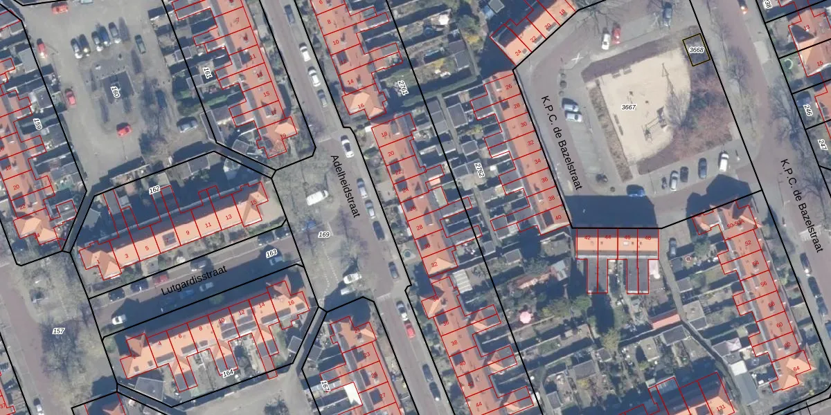 Het perceel waarop Adelheidstraat 26 staat heeft een oppervlakte van 3393 m². Dit is een zeer groot perceel. De perceeloppervlakte wordt geregistreerd door het Kadaster. Gedetailleerde informatie over de maten van dit perceel kunt u vinden in het rapport Kadastrale kaart met maatvoering van Adelheidstraat 26.