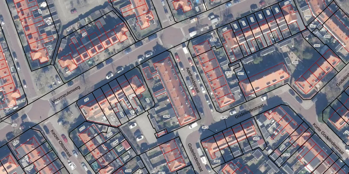 Het perceel waarop Adelheidstraat 47 staat heeft een oppervlakte van 965 m². Dit is een groot perceel. De perceeloppervlakte wordt geregistreerd door het Kadaster. Gedetailleerde informatie over de maten van dit perceel kunt u vinden in het rapport Kadastrale kaart met maatvoering van Adelheidstraat 47.