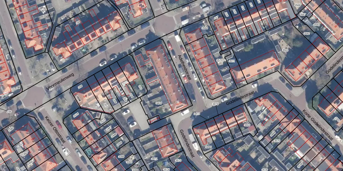 Het perceel waarop Adelheidstraat 49 staat heeft een oppervlakte van 965 m². Dit is een groot perceel. De perceeloppervlakte wordt geregistreerd door het Kadaster. Gedetailleerde informatie over de maten van dit perceel kunt u vinden in het rapport Kadastrale kaart met maatvoering van Adelheidstraat 49.