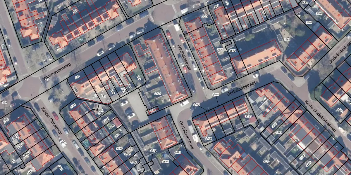 Het perceel waarop Adelheidstraat 51 staat heeft een oppervlakte van 965 m². Dit is een groot perceel. De perceeloppervlakte wordt geregistreerd door het Kadaster. Gedetailleerde informatie over de maten van dit perceel kunt u vinden in het rapport Kadastrale kaart met maatvoering van Adelheidstraat 51.