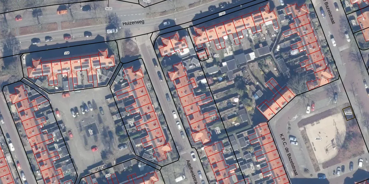 Het perceel waarop Adelheidstraat 6 staat heeft een oppervlakte van 3393 m². Dit is een zeer groot perceel. De perceeloppervlakte wordt geregistreerd door het Kadaster. Gedetailleerde informatie over de maten van dit perceel kunt u vinden in het rapport Kadastrale kaart met maatvoering van Adelheidstraat 6.