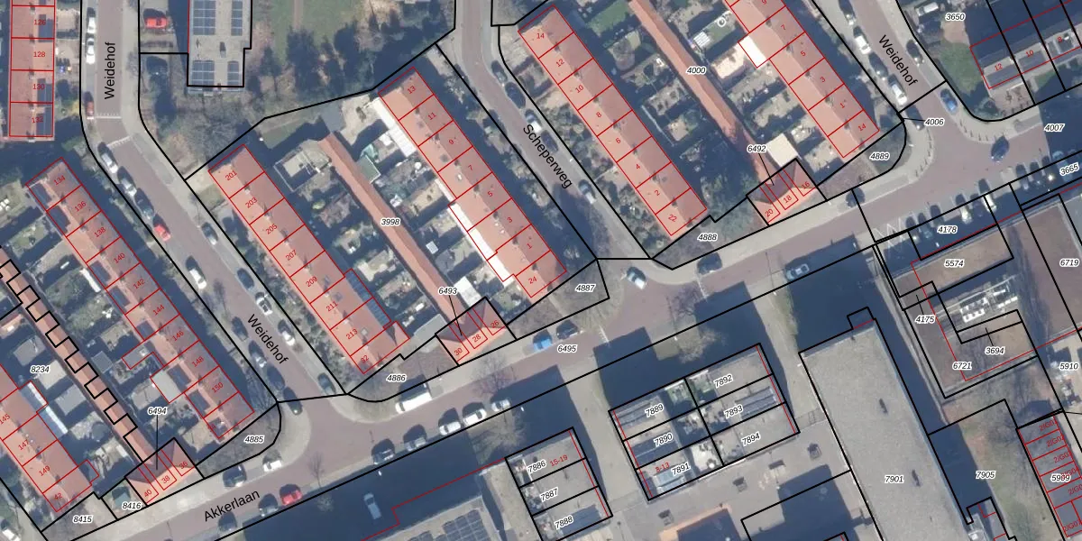 Het perceel waarop Akkerlaan 24 staat heeft een oppervlakte van 2596 m². Dit is een zeer groot perceel. De perceeloppervlakte wordt geregistreerd door het Kadaster. Gedetailleerde informatie over de maten van dit perceel kunt u vinden in het rapport Kadastrale kaart met maatvoering van Akkerlaan 24.