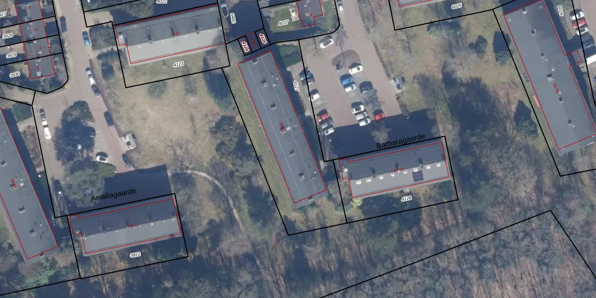 Het perceel waarop Barbaragaarde 44 staat heeft een oppervlakte van 1476 m². Dit is een zeer groot perceel. De perceeloppervlakte wordt geregistreerd door het Kadaster. Gedetailleerde informatie over de maten van dit perceel kunt u vinden in het rapport Kadastrale kaart met maatvoering van Barbaragaarde 44.