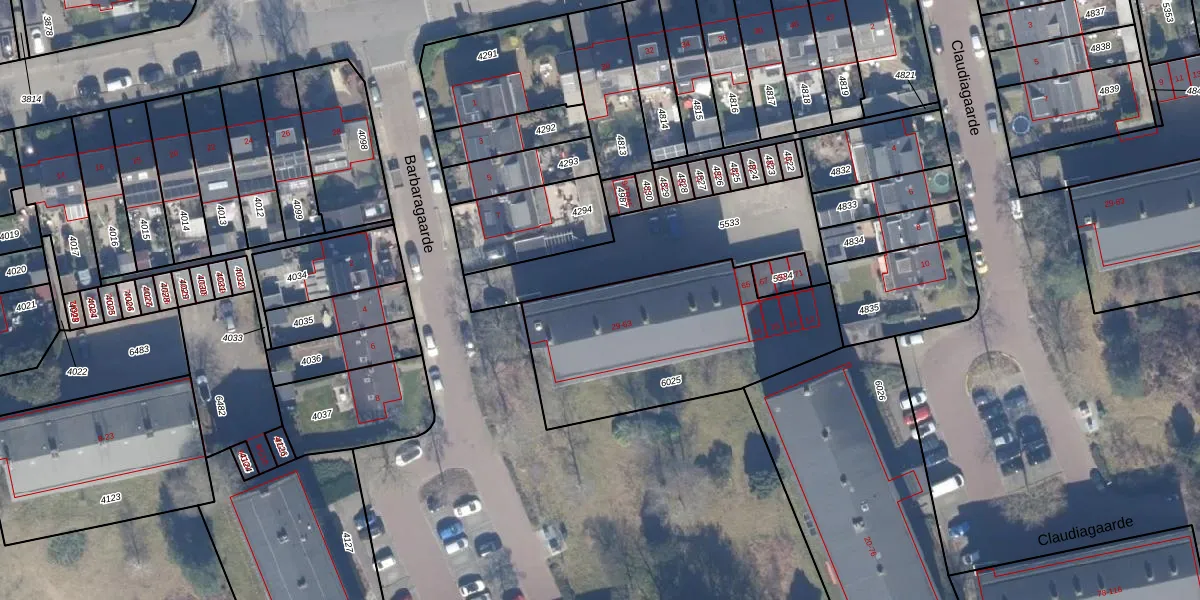 Het perceel waarop Barbaragaarde 53 staat heeft een oppervlakte van 987 m². Dit is een groot perceel. De perceeloppervlakte wordt geregistreerd door het Kadaster. Gedetailleerde informatie over de maten van dit perceel kunt u vinden in het rapport Kadastrale kaart met maatvoering van Barbaragaarde 53.