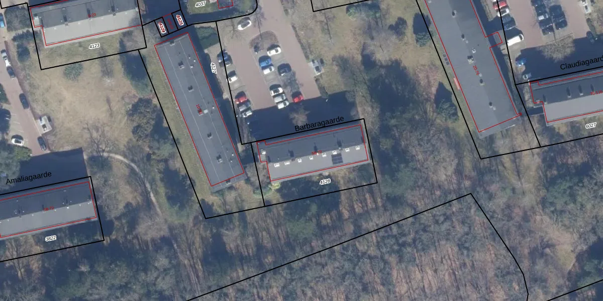Het perceel waarop Barbaragaarde 60 staat heeft een oppervlakte van 825 m². Dit is een groot perceel. De perceeloppervlakte wordt geregistreerd door het Kadaster. Gedetailleerde informatie over de maten van dit perceel kunt u vinden in het rapport Kadastrale kaart met maatvoering van Barbaragaarde 60.