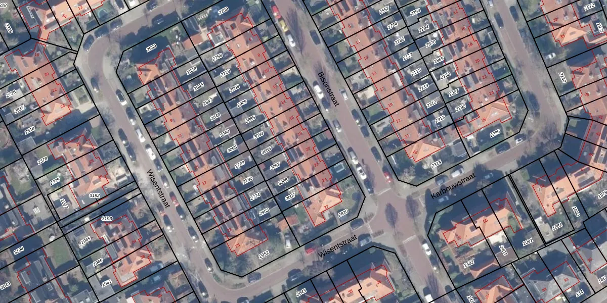 Het perceel waarop Bisonstraat 20 staat heeft een oppervlakte van 157 m². Dit is een middelgroot perceel. De perceeloppervlakte wordt geregistreerd door het Kadaster. Gedetailleerde informatie over de maten van dit perceel kunt u vinden in het rapport Kadastrale kaart met maatvoering van Bisonstraat 20.