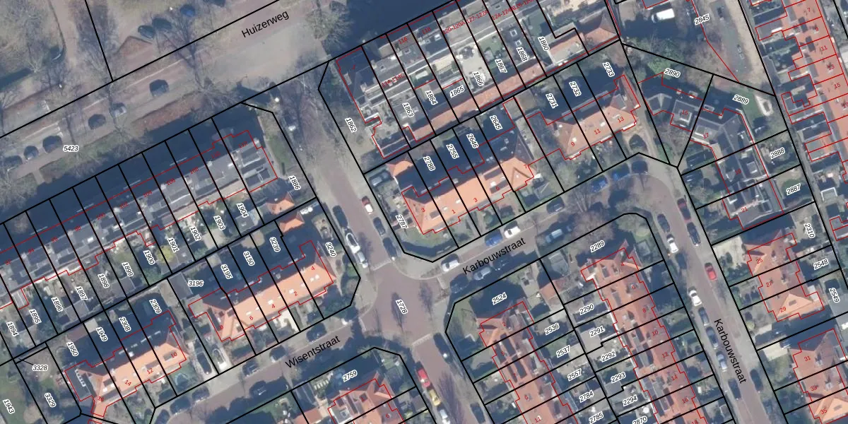 Gebruik de zoekbalk of klik op een perceel voor informatie over de adressen binnen dit perceel.