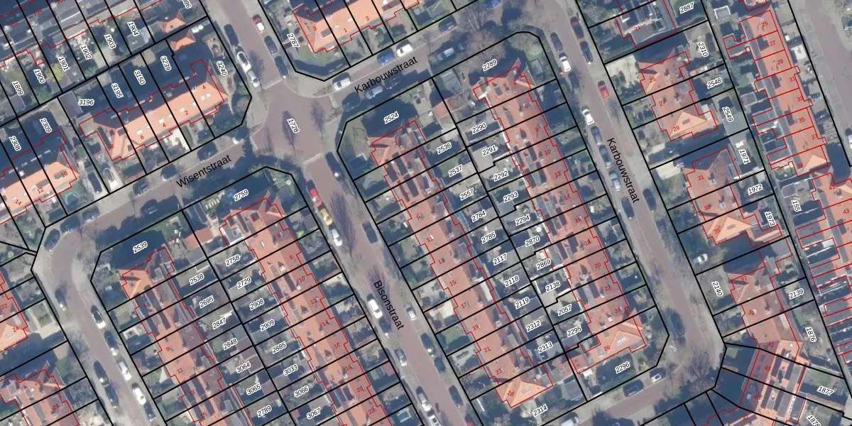 Gebruik de zoekbalk of klik op een perceel voor informatie over de adressen binnen dit perceel.