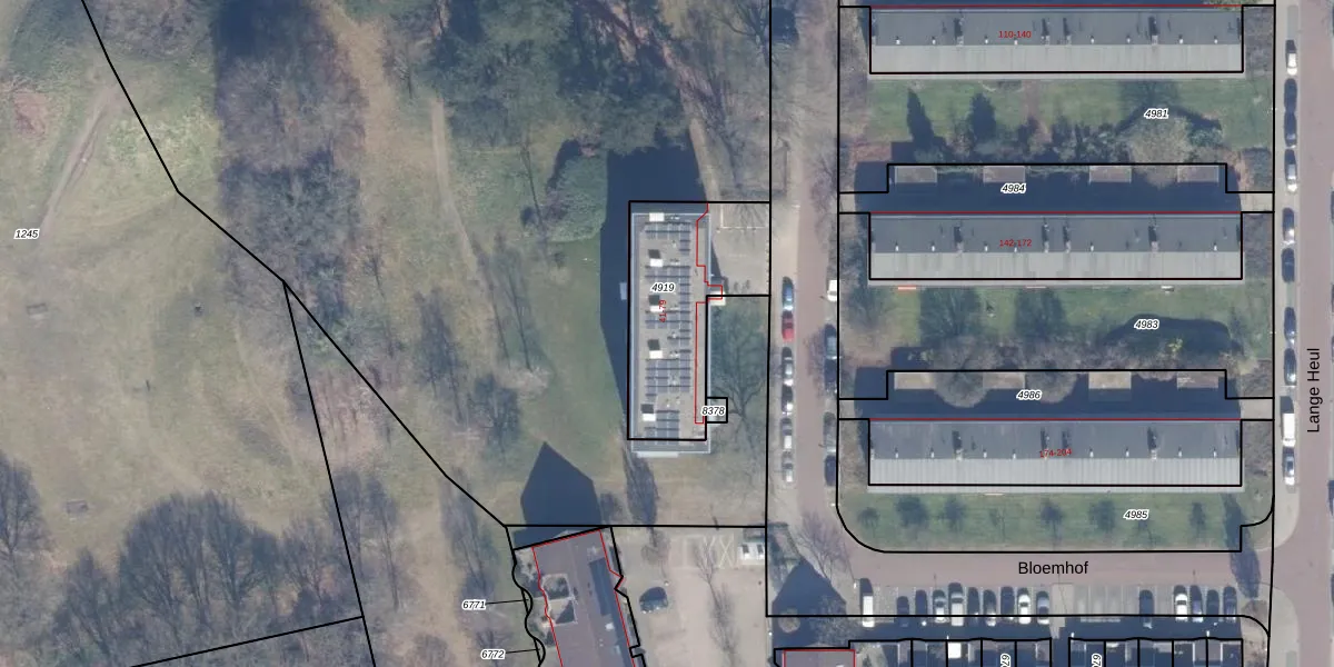 Het perceel waarop Bloemhof 65 staat heeft een oppervlakte van 544 m². Dit is een groot perceel. De perceeloppervlakte wordt geregistreerd door het Kadaster. Gedetailleerde informatie over de maten van dit perceel kunt u vinden in het rapport Kadastrale kaart met maatvoering van Bloemhof 65.