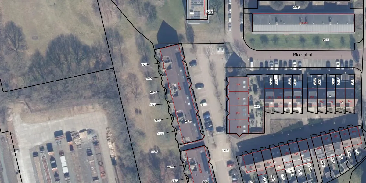 Het perceel waarop Bloemhof 99 staat heeft een oppervlakte van 793 m². Dit is een groot perceel. De perceeloppervlakte wordt geregistreerd door het Kadaster. Gedetailleerde informatie over de maten van dit perceel kunt u vinden in het rapport Kadastrale kaart met maatvoering van Bloemhof 99.