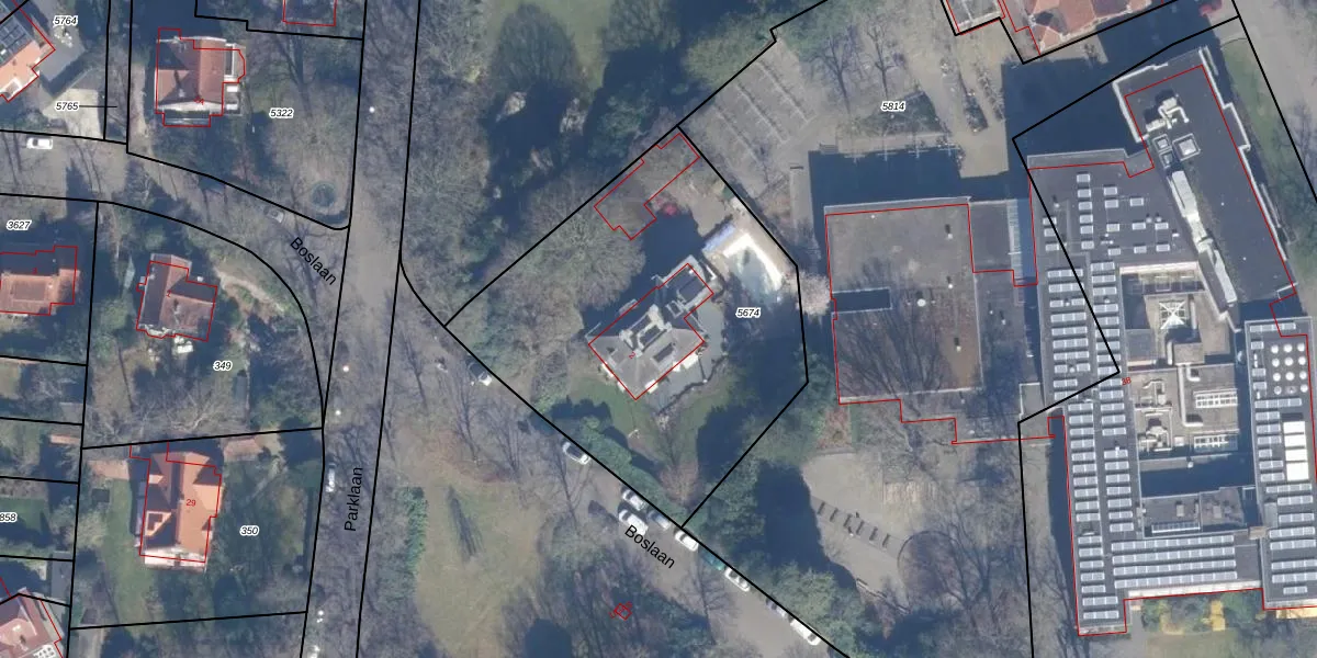 Het perceel waarop Boslaan 2 staat heeft een oppervlakte van 1850 m². Dit is een zeer groot perceel. De perceeloppervlakte wordt geregistreerd door het Kadaster. Gedetailleerde informatie over de maten van dit perceel kunt u vinden in het rapport Kadastrale kaart met maatvoering van Boslaan 2.
