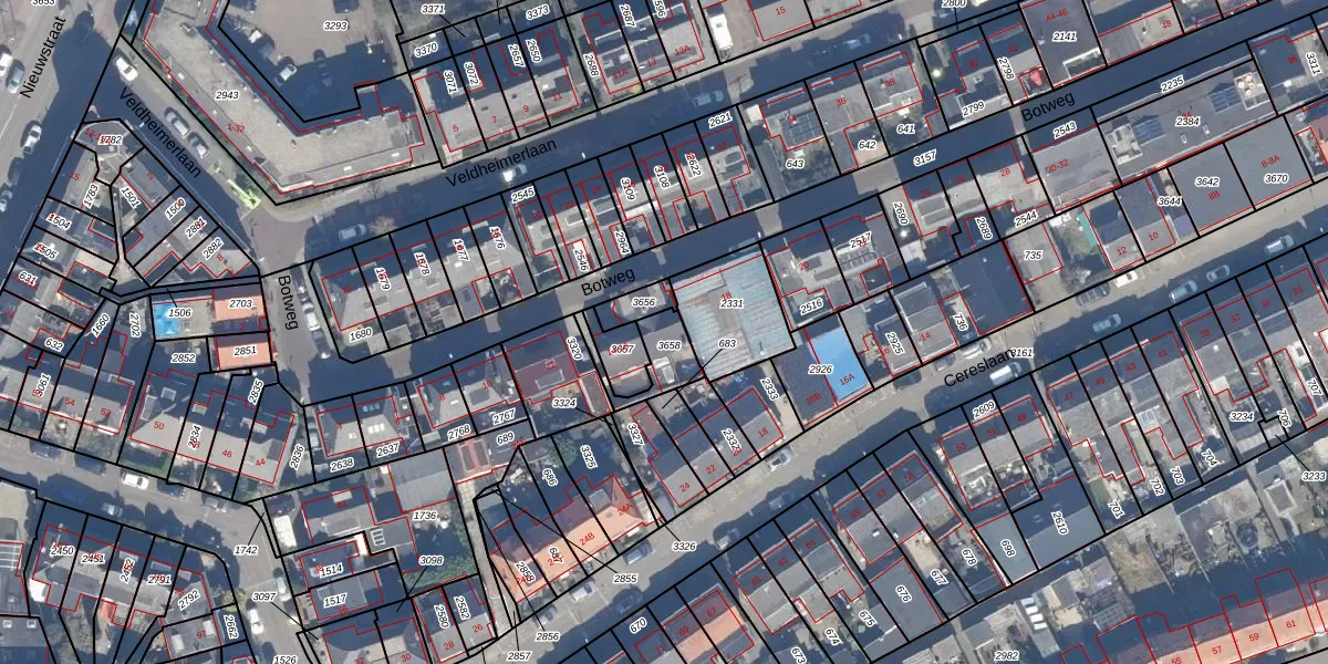 Het perceel waarop Botweg 16 staat heeft een oppervlakte van 111 m². Dit is een middelgroot perceel. De perceeloppervlakte wordt geregistreerd door het Kadaster. Gedetailleerde informatie over de maten van dit perceel kunt u vinden in het rapport Kadastrale kaart met maatvoering van Botweg 16.