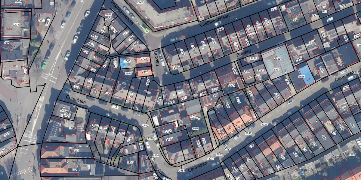 Het perceel waarop Botweg 6 staat heeft een oppervlakte van 88 m². Dit is een klein perceel. De perceeloppervlakte wordt geregistreerd door het Kadaster. Gedetailleerde informatie over de maten van dit perceel kunt u vinden in het rapport Kadastrale kaart met maatvoering van Botweg 6.