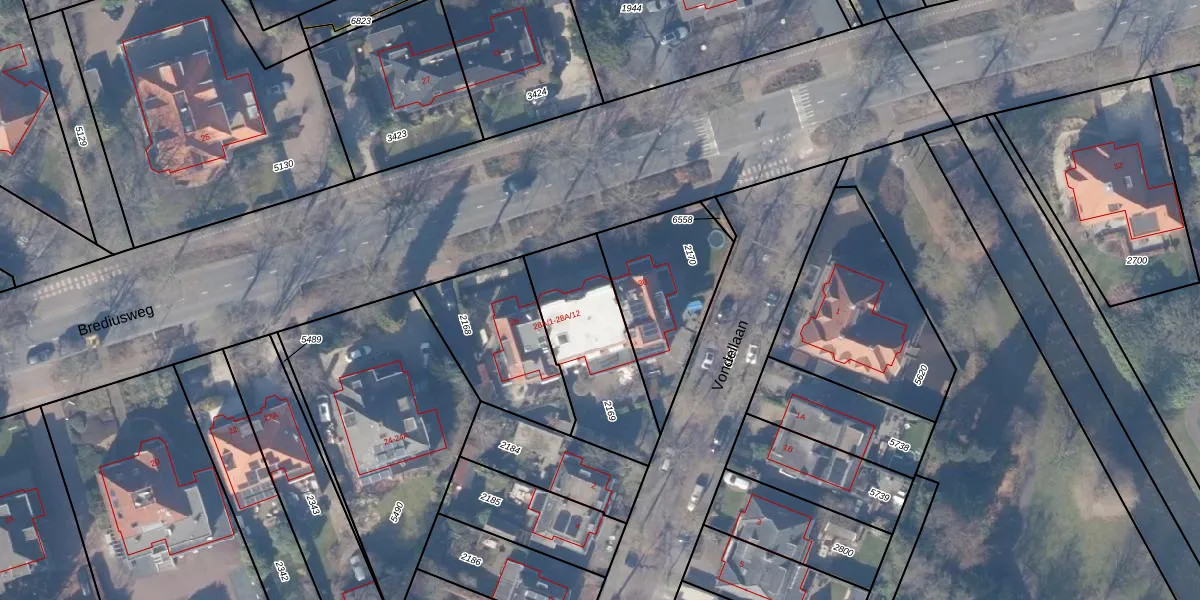 Het perceel waarop Brediusweg 28-A-5 staat heeft een oppervlakte van 470 m². Dit is een groot perceel. De perceeloppervlakte wordt geregistreerd door het Kadaster. Gedetailleerde informatie over de maten van dit perceel kunt u vinden in het rapport Kadastrale kaart met maatvoering van Brediusweg 28-A-5.