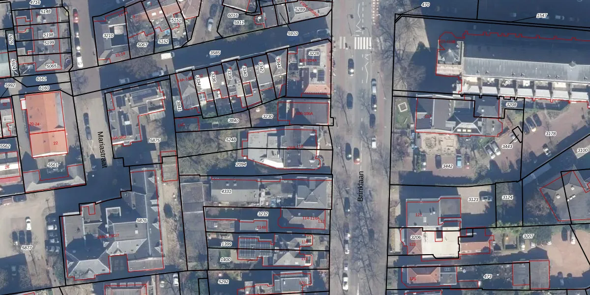 Het perceel waarop Brinklaan 108-D staat heeft een oppervlakte van 411 m². Dit is een groot perceel. De perceeloppervlakte wordt geregistreerd door het Kadaster. Gedetailleerde informatie over de maten van dit perceel kunt u vinden in het rapport Kadastrale kaart met maatvoering van Brinklaan 108-D.
