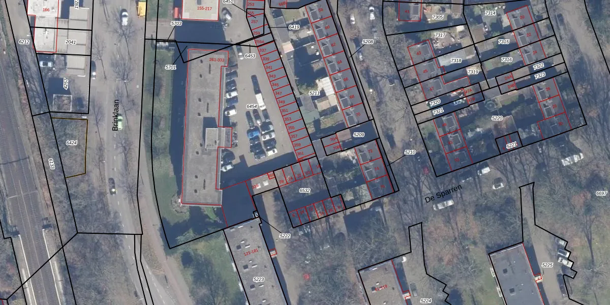 Brinklaan 361 is gelegen op kadastraal perceel BSM01D6454. Deze kadastrale aanduiding is uniek en wordt gebruikt door het Kadaster om eigendomsrechten en andere zakelijke rechten vast te leggen. Het perceel maakt onderdeel uit van de kadastrale gemeente Bussum.