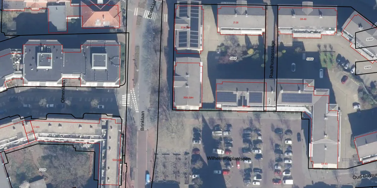 Brinklaan 39-F is gelegen op kadastraal perceel BSM01B5964. Deze kadastrale aanduiding is uniek en wordt gebruikt door het Kadaster om eigendomsrechten en andere zakelijke rechten vast te leggen. Het perceel maakt onderdeel uit van de kadastrale gemeente Bussum.