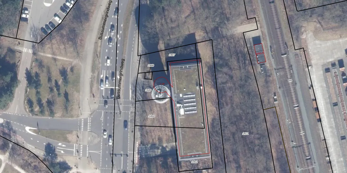 Het perceel waarop Bussummergrindweg 1-D staat heeft een oppervlakte van 950 m². Dit is een groot perceel. De perceeloppervlakte wordt geregistreerd door het Kadaster. Gedetailleerde informatie over de maten van dit perceel kunt u vinden in het rapport Kadastrale kaart met maatvoering van Bussummergrindweg 1-D.
