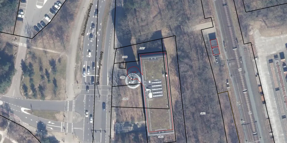 Het perceel waarop Bussummergrindweg 1-E staat heeft een oppervlakte van 950 m². Dit is een groot perceel. De perceeloppervlakte wordt geregistreerd door het Kadaster. Gedetailleerde informatie over de maten van dit perceel kunt u vinden in het rapport Kadastrale kaart met maatvoering van Bussummergrindweg 1-E.