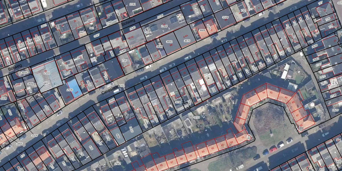 Het perceel waarop Cereslaan 39 staat heeft een oppervlakte van 150 m². Dit is een middelgroot perceel. De perceeloppervlakte wordt geregistreerd door het Kadaster. Gedetailleerde informatie over de maten van dit perceel kunt u vinden in het rapport Kadastrale kaart met maatvoering van Cereslaan 39.