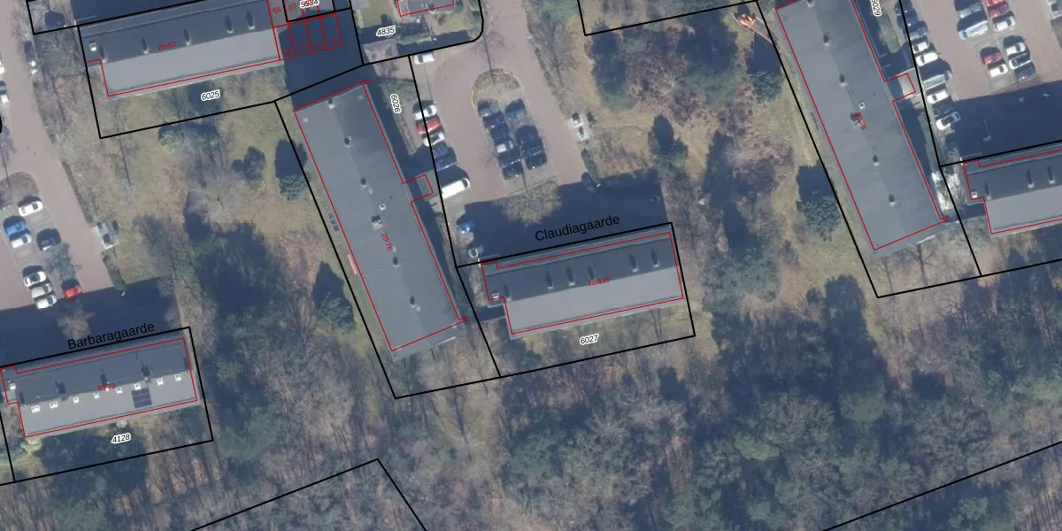 Het perceel waarop Claudiagaarde 104 staat heeft een oppervlakte van 866 m². Dit is een groot perceel. De perceeloppervlakte wordt geregistreerd door het Kadaster. Gedetailleerde informatie over de maten van dit perceel kunt u vinden in het rapport Kadastrale kaart met maatvoering van Claudiagaarde 104.