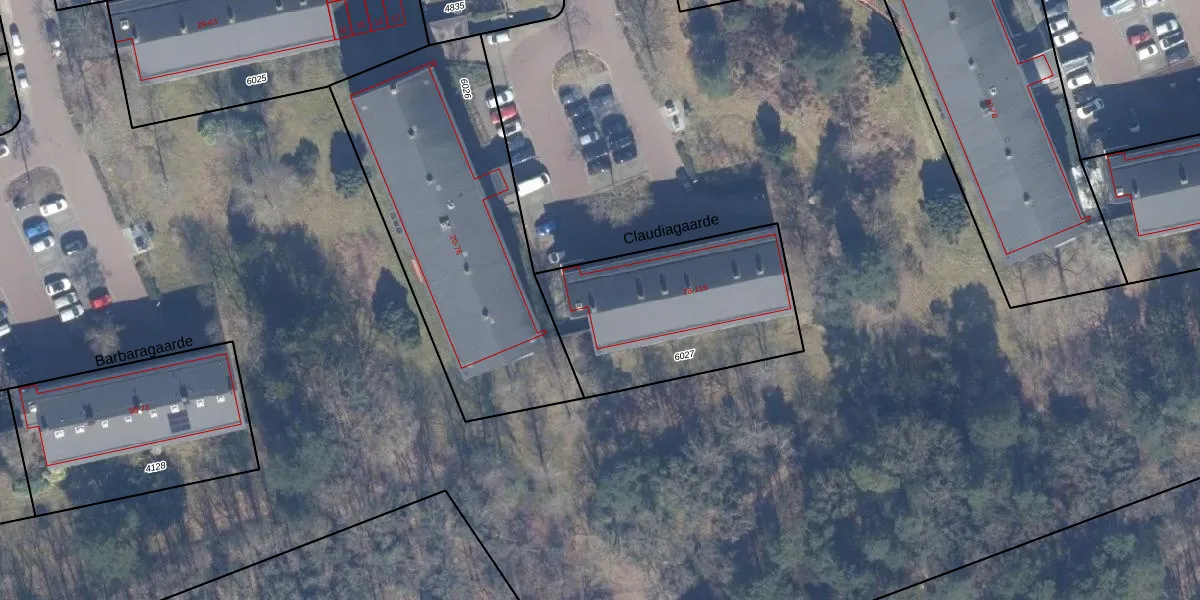 Het perceel waarop Claudiagaarde 90 staat heeft een oppervlakte van 866 m². Dit is een groot perceel. De perceeloppervlakte wordt geregistreerd door het Kadaster. Gedetailleerde informatie over de maten van dit perceel kunt u vinden in het rapport Kadastrale kaart met maatvoering van Claudiagaarde 90.