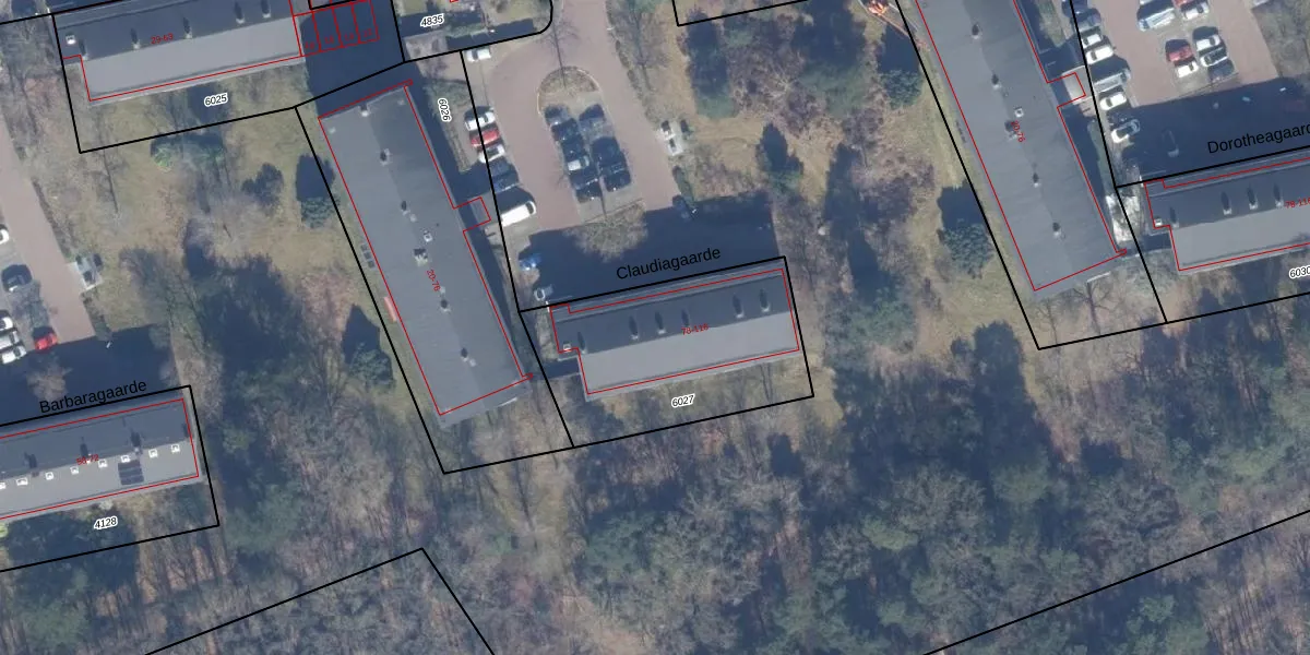 Het perceel waarop Claudiagaarde 94 staat heeft een oppervlakte van 866 m². Dit is een groot perceel. De perceeloppervlakte wordt geregistreerd door het Kadaster. Gedetailleerde informatie over de maten van dit perceel kunt u vinden in het rapport Kadastrale kaart met maatvoering van Claudiagaarde 94.