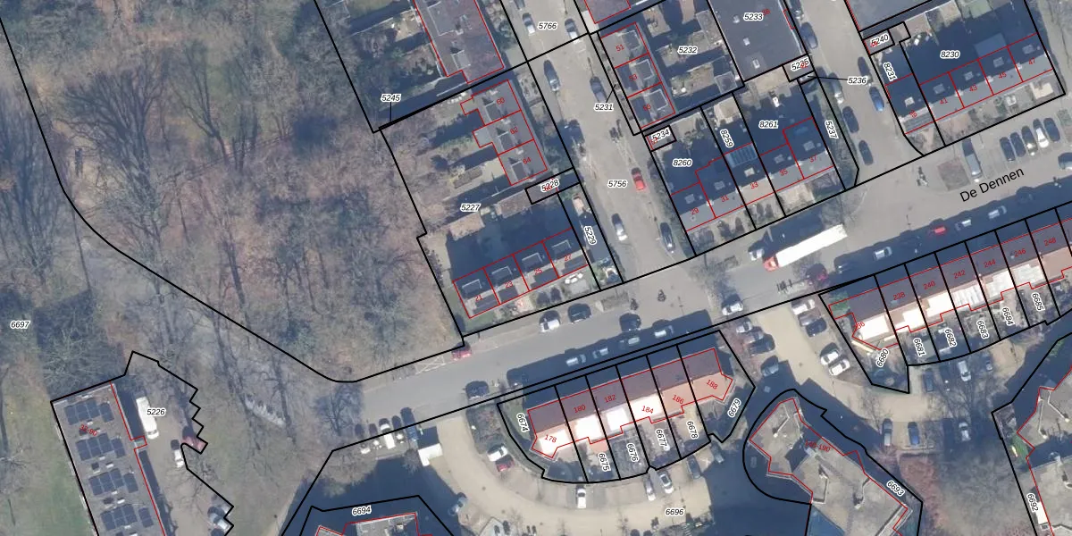 Het perceel waarop De Dennen 25 staat heeft een oppervlakte van 1215 m². Dit is een zeer groot perceel. De perceeloppervlakte wordt geregistreerd door het Kadaster. Gedetailleerde informatie over de maten van dit perceel kunt u vinden in het rapport Kadastrale kaart met maatvoering van De Dennen 25.