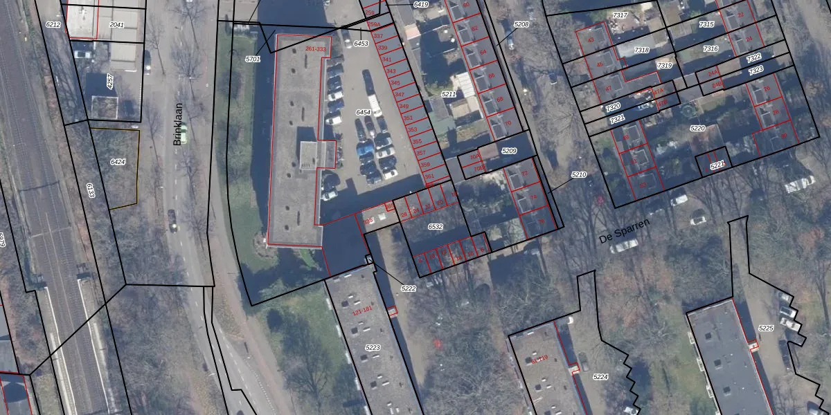 Het perceel waarop De Sparren 24 staat heeft een oppervlakte van 310 m². Dit is een groot perceel. De perceeloppervlakte wordt geregistreerd door het Kadaster. Gedetailleerde informatie over de maten van dit perceel kunt u vinden in het rapport Kadastrale kaart met maatvoering van De Sparren 24.