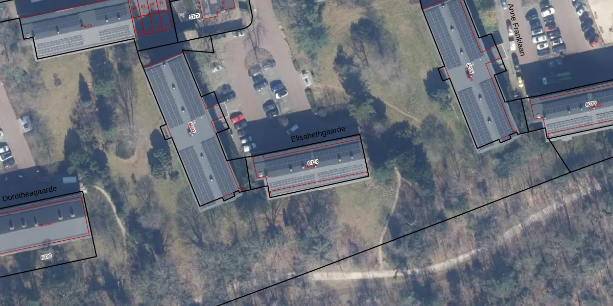 Het perceel waarop Elisabethgaarde 108 staat heeft een oppervlakte van 520 m². Dit is een groot perceel. De perceeloppervlakte wordt geregistreerd door het Kadaster. Gedetailleerde informatie over de maten van dit perceel kunt u vinden in het rapport Kadastrale kaart met maatvoering van Elisabethgaarde 108.
