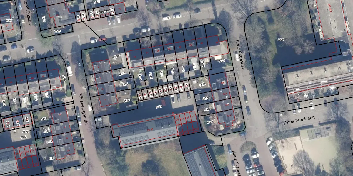 Gebruik de zoekbalk of klik op een perceel voor informatie over de adressen binnen dit perceel.
