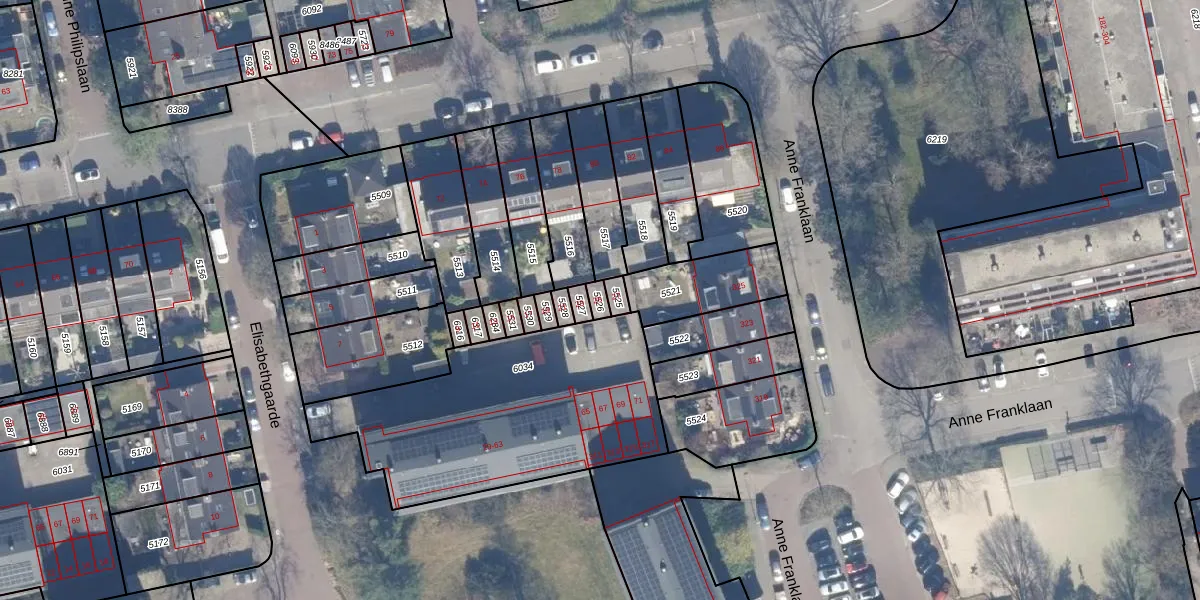 Het perceel waarop Elisabethgaarde 25 staat heeft een oppervlakte van 19 m². Dit is een klein perceel. De perceeloppervlakte wordt geregistreerd door het Kadaster. Gedetailleerde informatie over de maten van dit perceel kunt u vinden in het rapport Kadastrale kaart met maatvoering van Elisabethgaarde 25.