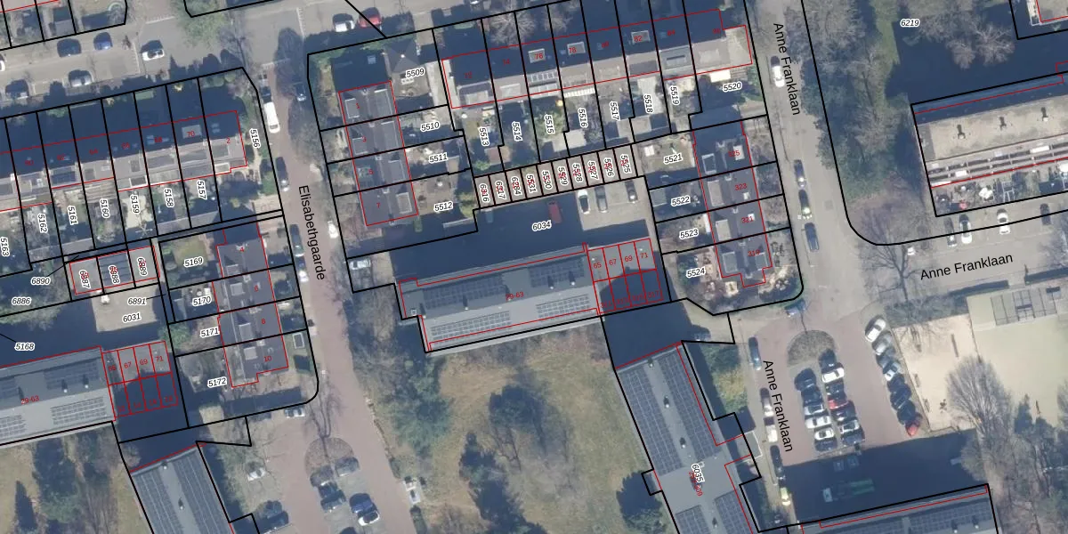 Het perceel waarop Elisabethgaarde 59 staat heeft een oppervlakte van 1157 m². Dit is een zeer groot perceel. De perceeloppervlakte wordt geregistreerd door het Kadaster. Gedetailleerde informatie over de maten van dit perceel kunt u vinden in het rapport Kadastrale kaart met maatvoering van Elisabethgaarde 59.