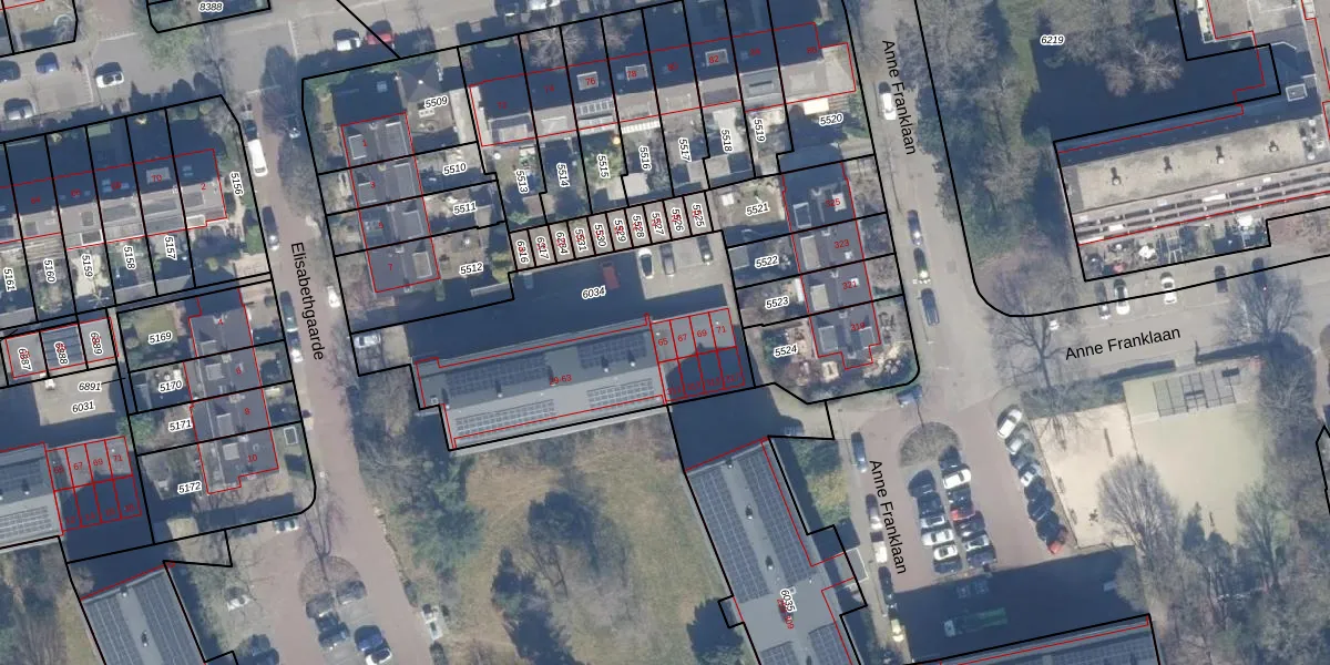 Het perceel waarop Elisabethgaarde 65 staat heeft een oppervlakte van 1157 m². Dit is een zeer groot perceel. De perceeloppervlakte wordt geregistreerd door het Kadaster. Gedetailleerde informatie over de maten van dit perceel kunt u vinden in het rapport Kadastrale kaart met maatvoering van Elisabethgaarde 65.