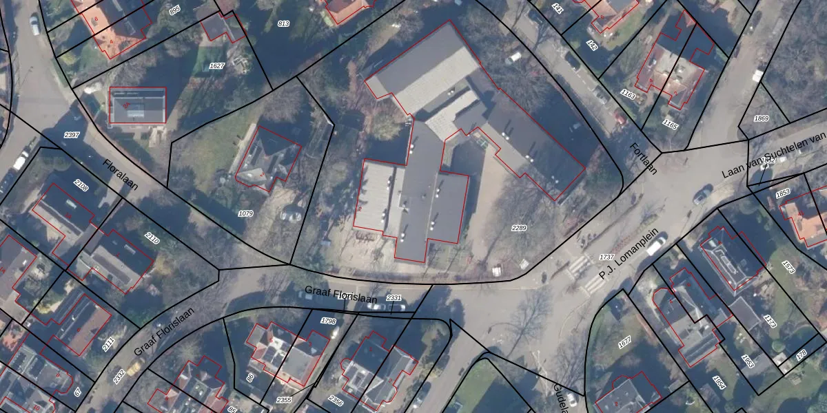 Het perceel waarop Graaf Florislaan 2 staat heeft een oppervlakte van 4050 m². Dit is een zeer groot perceel. De perceeloppervlakte wordt geregistreerd door het Kadaster. Gedetailleerde informatie over de maten van dit perceel kunt u vinden in het rapport Kadastrale kaart met maatvoering van Graaf Florislaan 2.
