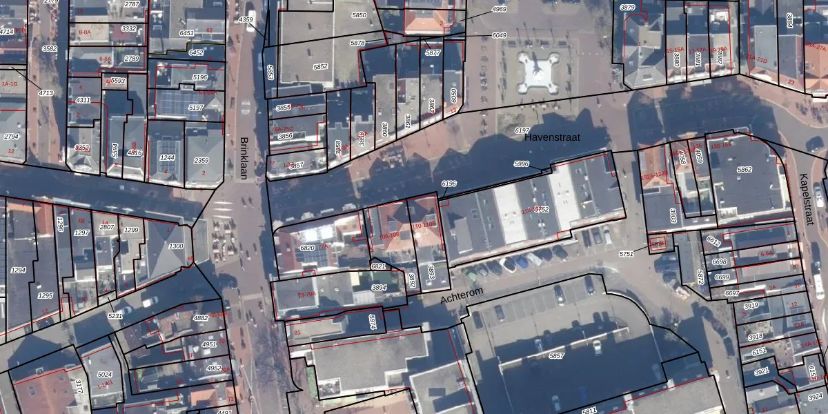 Havenstraat 110 is gelegen op kadastraal perceel BSM01B3893. Deze kadastrale aanduiding is uniek en wordt gebruikt door het Kadaster om eigendomsrechten en andere zakelijke rechten vast te leggen. Het perceel maakt onderdeel uit van de kadastrale gemeente Bussum.