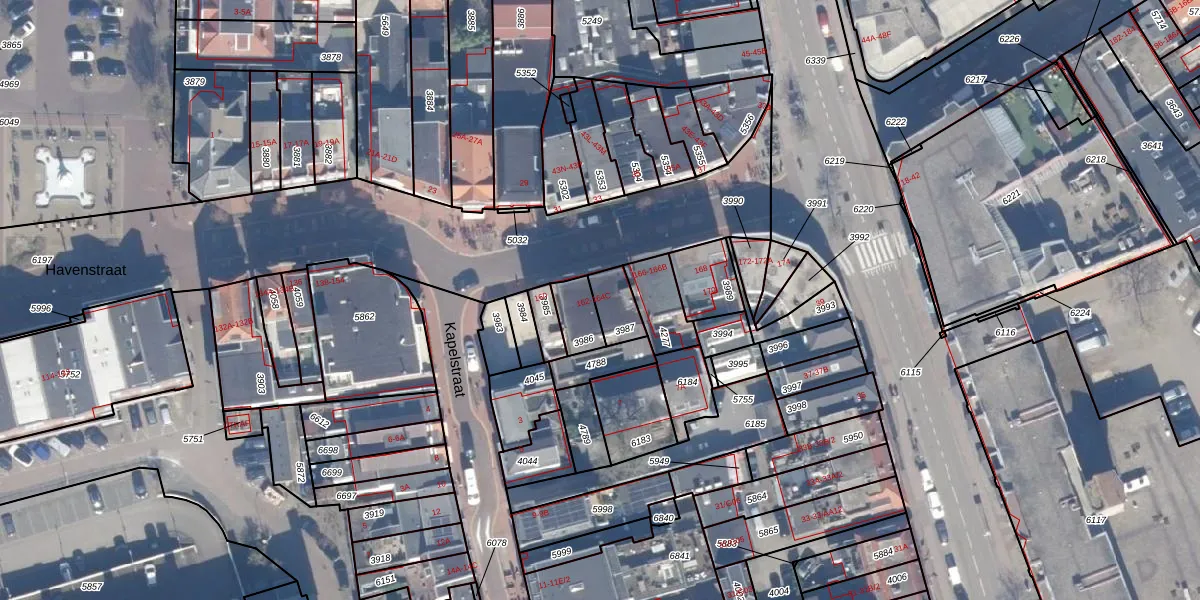 Het perceel waarop Havenstraat 164-A staat heeft een oppervlakte van 61 m². Dit is een klein perceel. De perceeloppervlakte wordt geregistreerd door het Kadaster. Gedetailleerde informatie over de maten van dit perceel kunt u vinden in het rapport Kadastrale kaart met maatvoering van Havenstraat 164-A.
