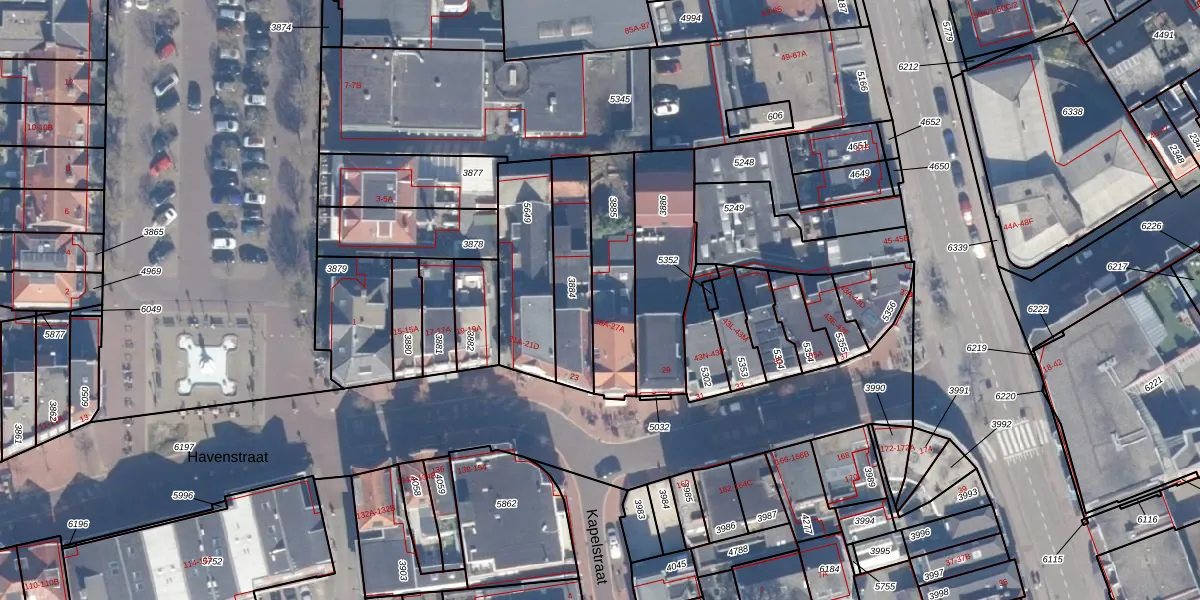 Het perceel waarop Havenstraat 25-B staat heeft een oppervlakte van 305 m². Dit is een groot perceel. De perceeloppervlakte wordt geregistreerd door het Kadaster. Gedetailleerde informatie over de maten van dit perceel kunt u vinden in het rapport Kadastrale kaart met maatvoering van Havenstraat 25-B.