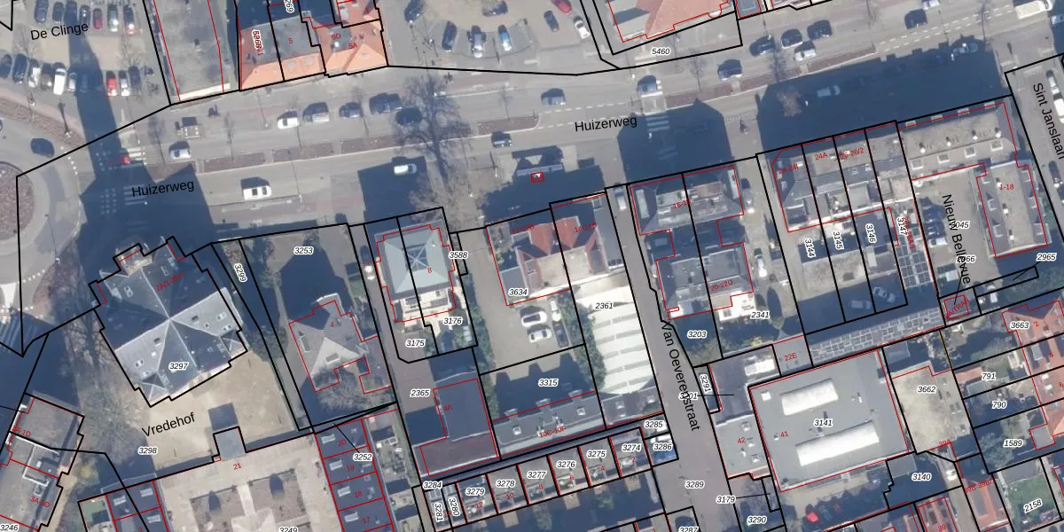 Huizerweg 12-B is gelegen op kadastraal perceel BSM01G3634. Deze kadastrale aanduiding is uniek en wordt gebruikt door het Kadaster om eigendomsrechten en andere zakelijke rechten vast te leggen. Het perceel maakt onderdeel uit van de kadastrale gemeente Bussum.
