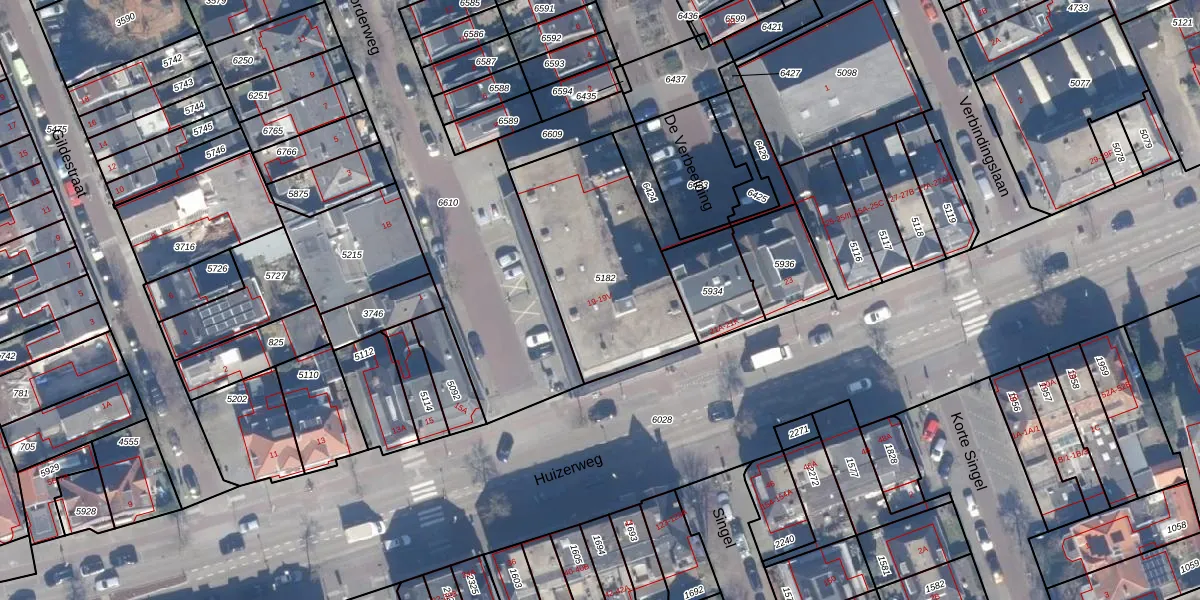 Huizerweg 19-V is gelegen op kadastraal perceel BSM01B5182. Deze kadastrale aanduiding is uniek en wordt gebruikt door het Kadaster om eigendomsrechten en andere zakelijke rechten vast te leggen. Het perceel maakt onderdeel uit van de kadastrale gemeente Bussum.