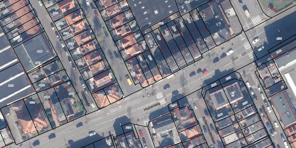 Huizerweg 41-A is gelegen op kadastraal perceel BSM01B5072. Deze kadastrale aanduiding is uniek en wordt gebruikt door het Kadaster om eigendomsrechten en andere zakelijke rechten vast te leggen. Het perceel maakt onderdeel uit van de kadastrale gemeente Bussum.