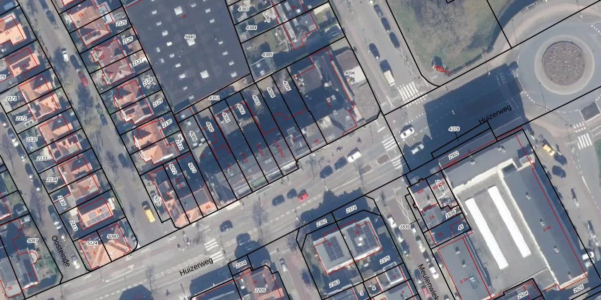 Huizerweg 47-B is gelegen op kadastraal perceel BSM01B4094. Deze kadastrale aanduiding is uniek en wordt gebruikt door het Kadaster om eigendomsrechten en andere zakelijke rechten vast te leggen. Het perceel maakt onderdeel uit van de kadastrale gemeente Bussum.