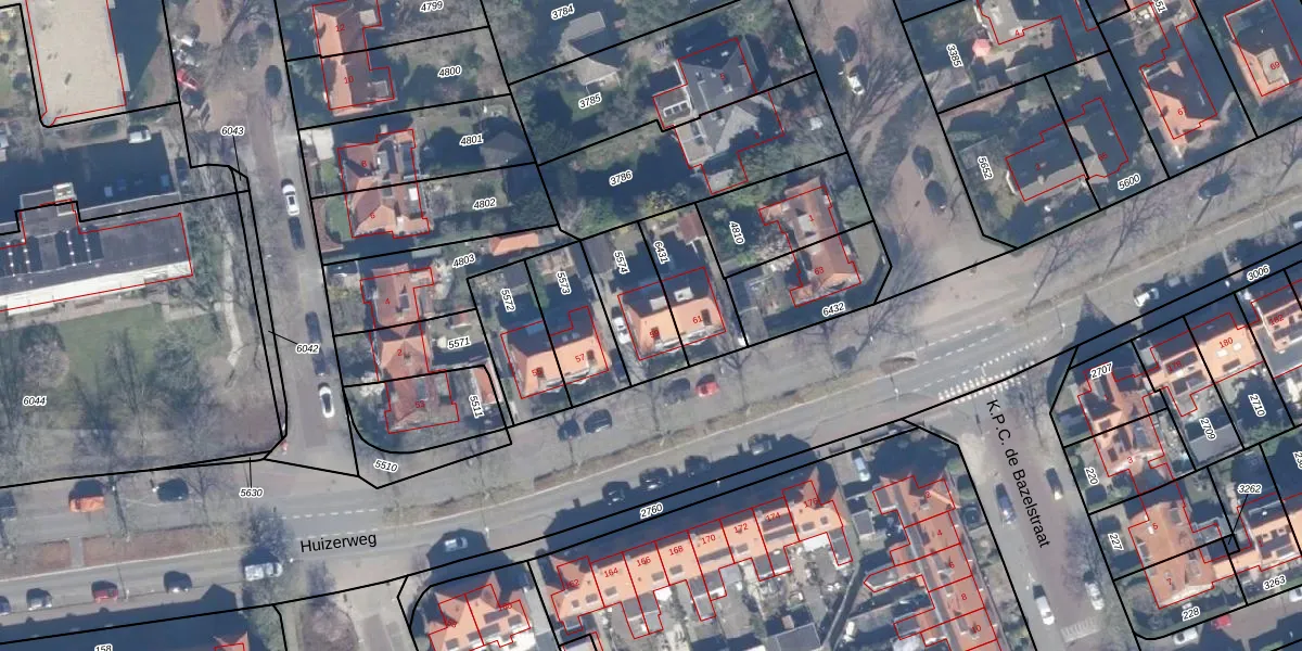Het perceel waarop Huizerweg 59 staat heeft een oppervlakte van 218 m². Dit is een middelgroot perceel. De perceeloppervlakte wordt geregistreerd door het Kadaster. Gedetailleerde informatie over de maten van dit perceel kunt u vinden in het rapport Kadastrale kaart met maatvoering van Huizerweg 59.