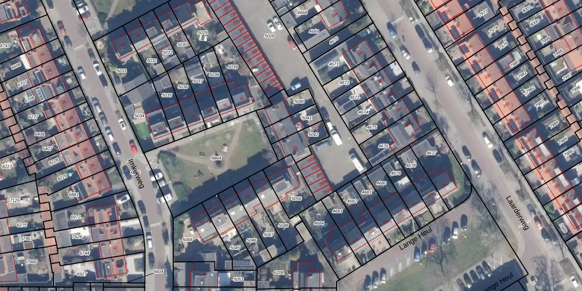 Gebruik de zoekbalk of klik op een perceel voor informatie over de adressen binnen dit perceel.