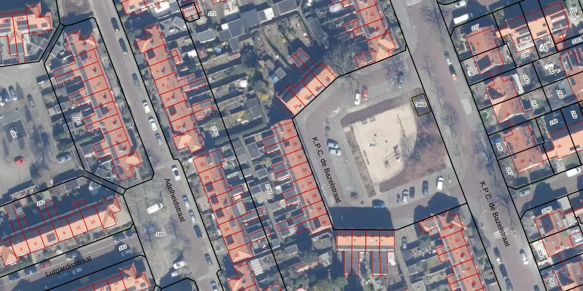 Het perceel waarop K.P.C. de Bazelstraat 28 staat heeft een oppervlakte van 8598 m². Dit is een zeer groot perceel. De perceeloppervlakte wordt geregistreerd door het Kadaster. Gedetailleerde informatie over de maten van dit perceel kunt u vinden in het rapport Kadastrale kaart met maatvoering van K.P.C. de Bazelstraat 28.