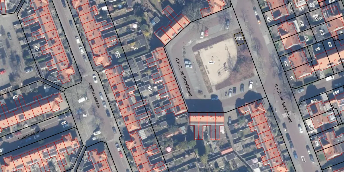 Het perceel waarop K.P.C. de Bazelstraat 34 staat heeft een oppervlakte van 8598 m². Dit is een zeer groot perceel. De perceeloppervlakte wordt geregistreerd door het Kadaster. Gedetailleerde informatie over de maten van dit perceel kunt u vinden in het rapport Kadastrale kaart met maatvoering van K.P.C. de Bazelstraat 34.