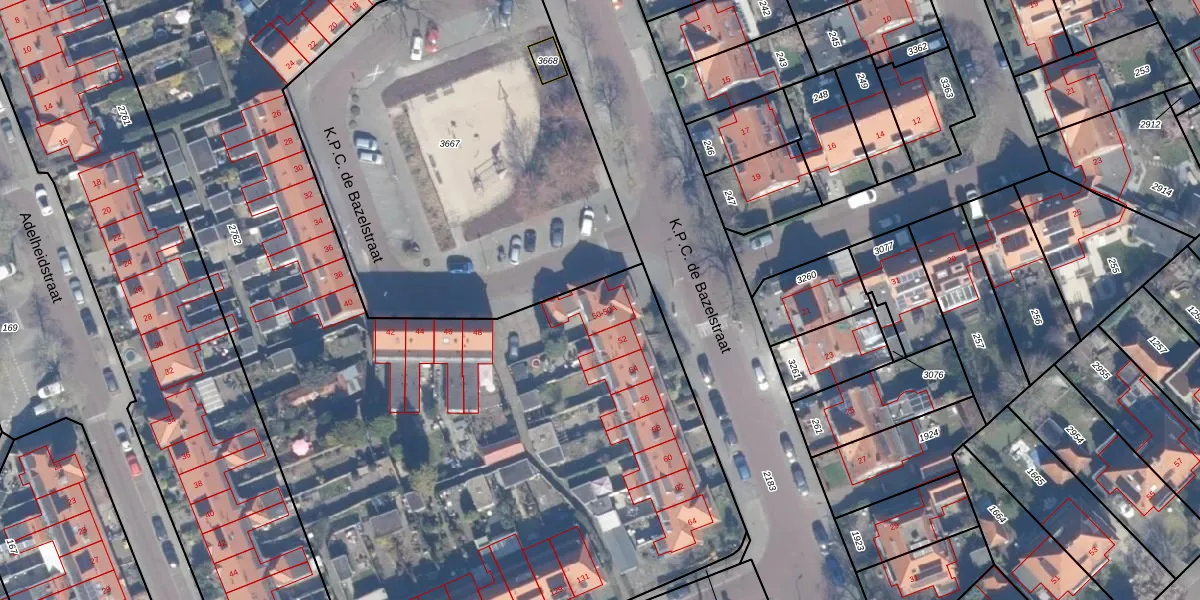 Het perceel waarop K.P.C. de Bazelstraat 50 staat heeft een oppervlakte van 8598 m². Dit is een zeer groot perceel. De perceeloppervlakte wordt geregistreerd door het Kadaster. Gedetailleerde informatie over de maten van dit perceel kunt u vinden in het rapport Kadastrale kaart met maatvoering van K.P.C. de Bazelstraat 50.