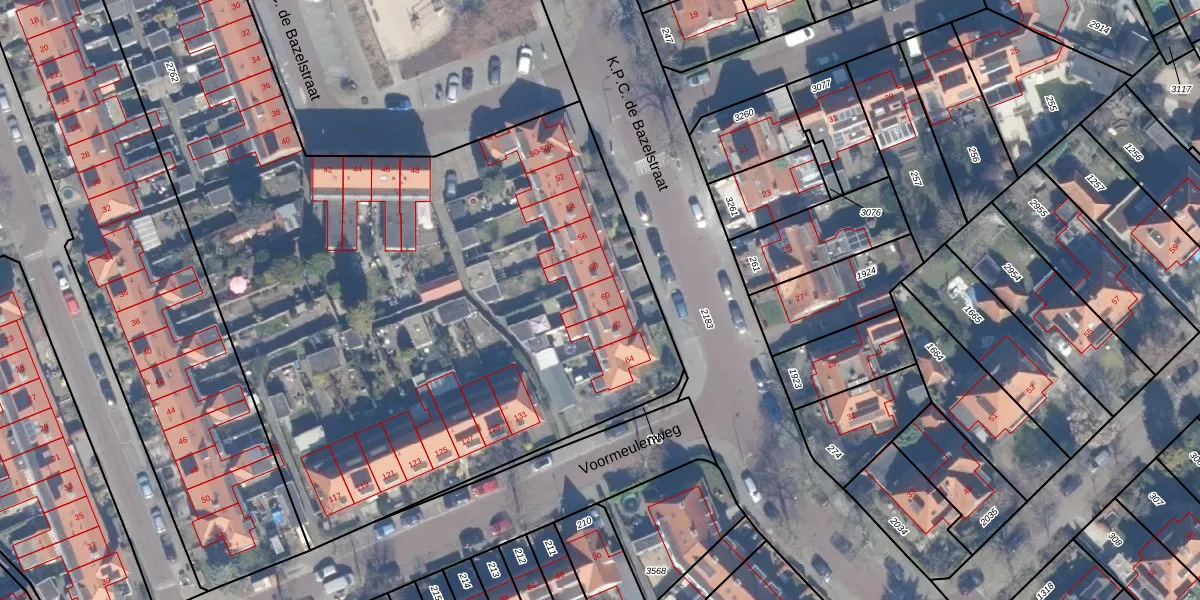 Het perceel waarop K.P.C. de Bazelstraat 60 staat heeft een oppervlakte van 8598 m². Dit is een zeer groot perceel. De perceeloppervlakte wordt geregistreerd door het Kadaster. Gedetailleerde informatie over de maten van dit perceel kunt u vinden in het rapport Kadastrale kaart met maatvoering van K.P.C. de Bazelstraat 60.